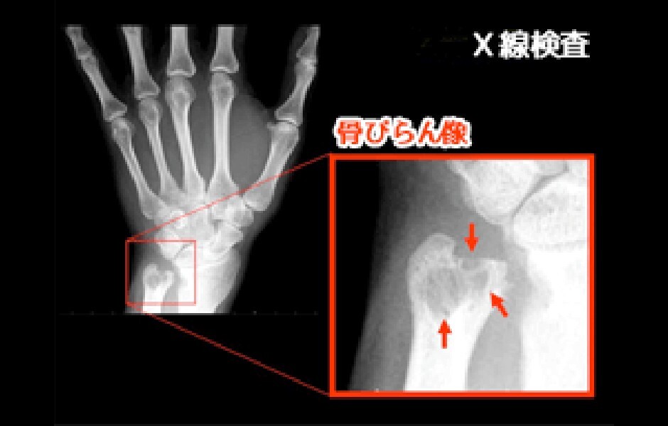 - X線検査で、手の関節に異常が見られる(骨びらんなど)